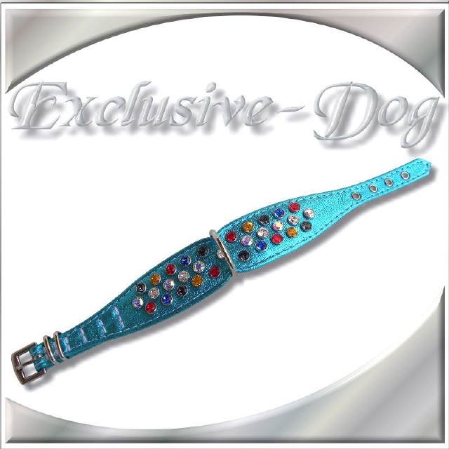 Dieses XS Strasshalsband wurden aus metallic blau farbenen Nappaleder hergestellt,
