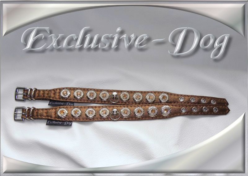 Dieses Luxus Strasshalsband wurde aus Nappaleder in bronze metallic gefertigt,