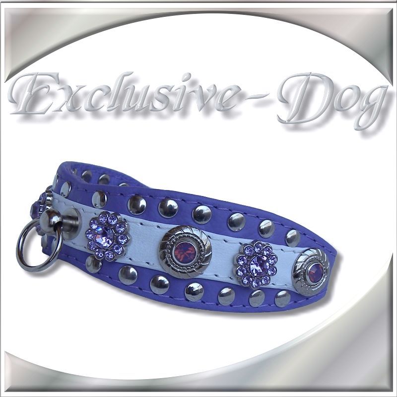 Lila XS Strass Hundehalsband Lederhalsband für z.b. Chihuahua, Pudel, Yorkshire-Terrier