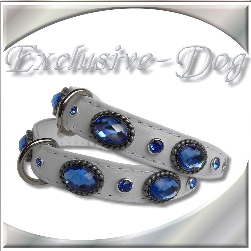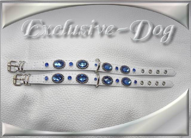 Diese kleinen Strasshalsbänder wurden aus weißem Ross-Nappaleder hergestellt,