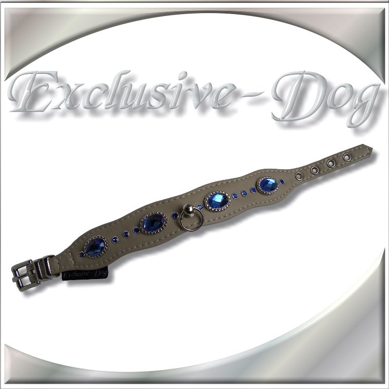 XS Strasshalsband Hundehalsband m.blauen Strass