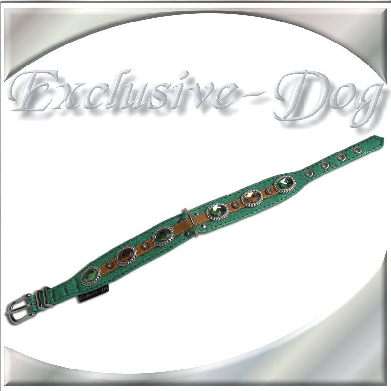 Exclusive-Dog Hundehalsband Lederhalsband, grünes Strasshalsband für .z.b. Mops-Cocker Spaniel