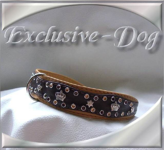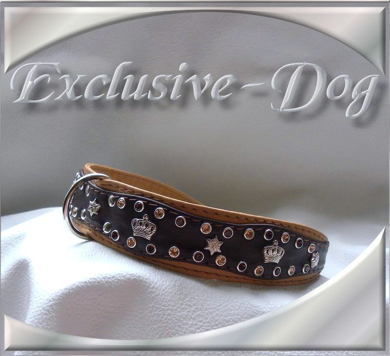 Lederhalsband Hundehalsband -Strass -Krone - mit SWAROVSKI ELEMENTS für z.b. West Highland Terrier - Mops Strasshalsband