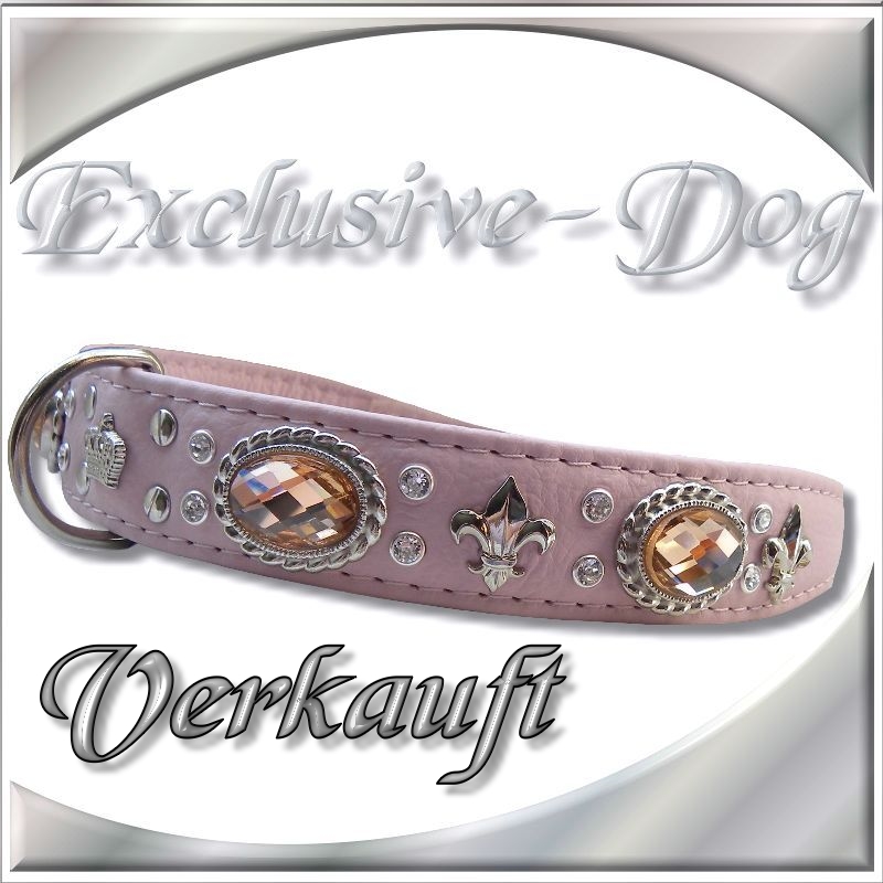 Puder Rosa Hundehalsband Strasshalsband Lederhalsband mit SWAROVSKI ELEMENTS Luxus Hunde für z.B. Cocker Spaniel