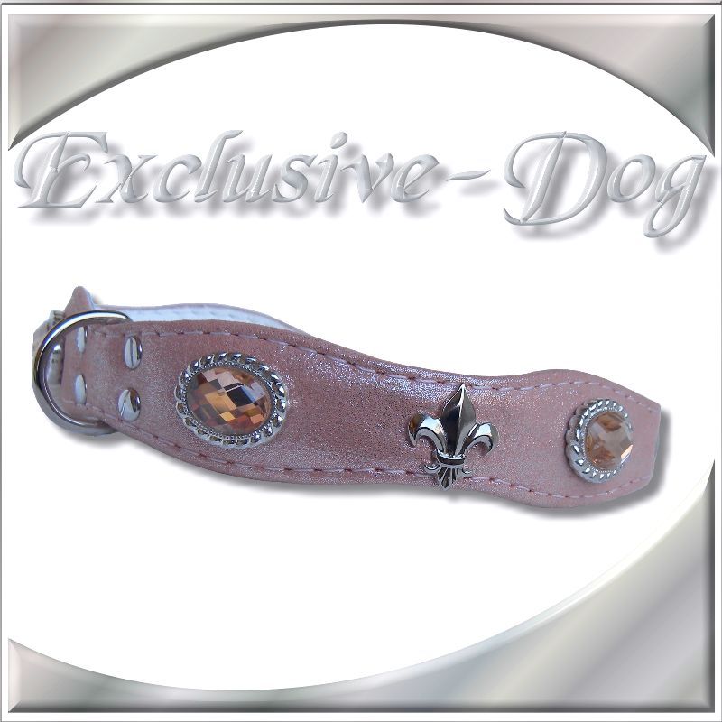 Rosa-Apricot Hundehalsband Lederhalsband Strass
