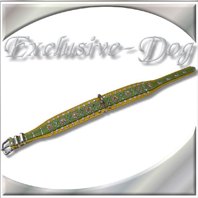 Strass-Hundehalsband Lederhalsband grün-gelb