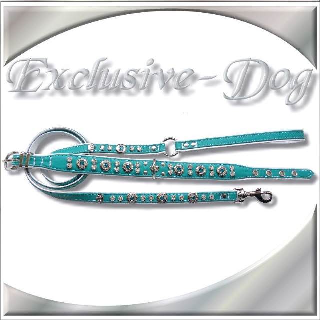 Leder-Set Hundehalsband & Leine mit SWAROVSKI-ELEMENTS für z.b. Mops - Cocker Spaniel - Beagle