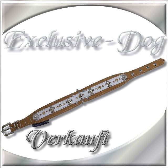 Strass Lilie Lederhalsband Hundehalsband cocnac