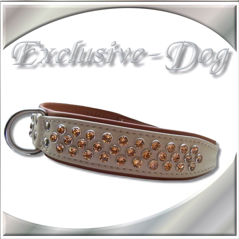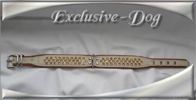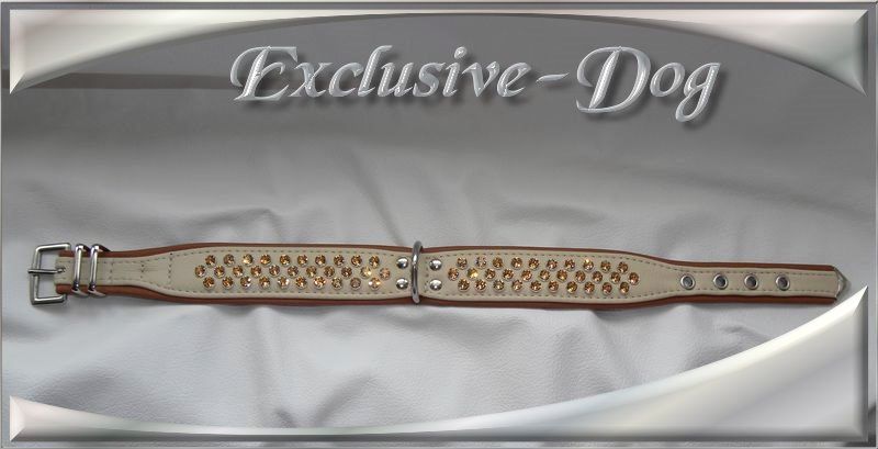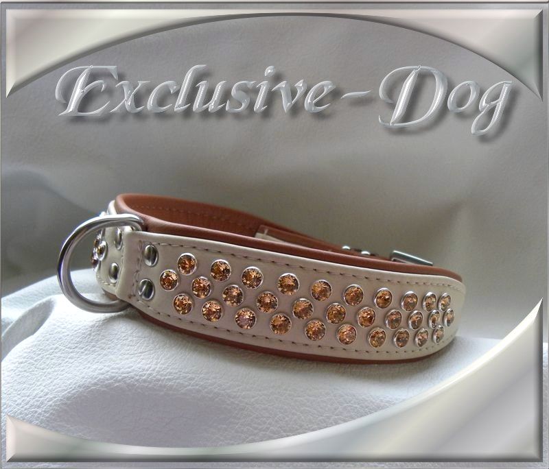 Dieses Strass Hundehalsband wurde aus beigem Nappaleder hergestellt,