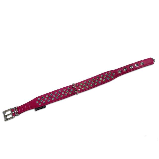 Verleihen Sie Ihrem geliebten Vierbeiner einen Hauch von Glamour mit unserem exklusiven Hundehalsband. Hergestellt aus hochwertigem pinkfarbenem Leder, besticht dieses Halsband durch funkelnde Crystal AB Strassnieten. Die Unterseite ist ebenfalls mit weichem pinkfarbenem Leder unterlegt, um maximalen Komfort zu gewährleisten – keine Nieten auf der Innenseite.