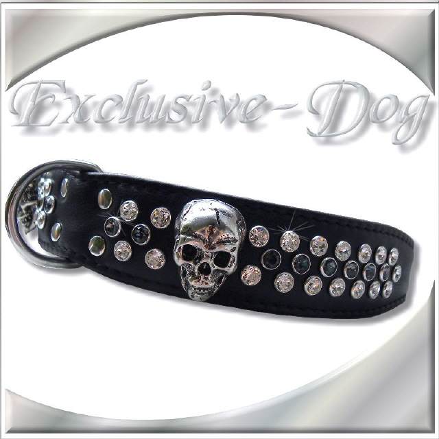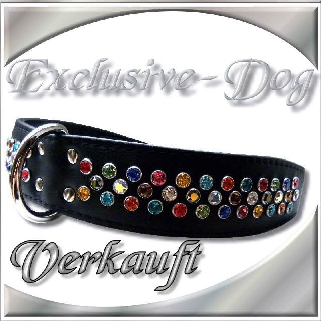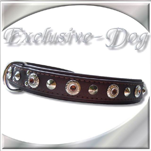 Hundehalsband Lederhalsband mit SWAROVSKI ELEMENTS - Nieten Halsband Hund für z.b. Französische Bullogge-Dobermann-Rhodesian Ridgeback Lederhalsband " SQUER "