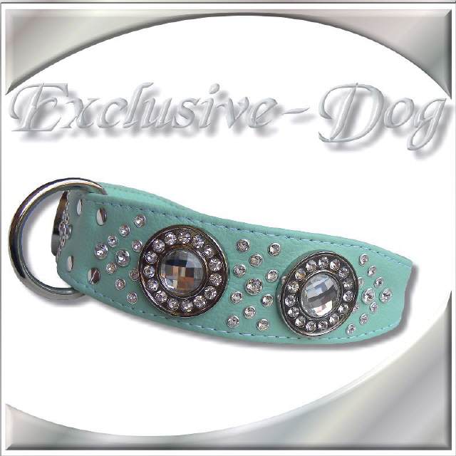 Lederhalsband mint-türkis Hundehalsband mit SWAROVSKI ELEMENTS Strasshalsband für z.b. Französische Bulldogge-Dobermann-Dalmatiner " Hundehalsband ILLUSION "