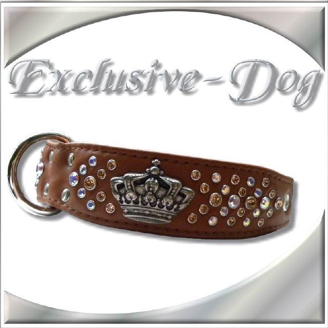Lederhalsbänder Strasshalsband Krone Strass Cocnac