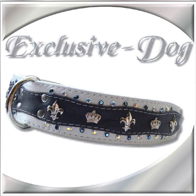 Luxus Hundehalsband Lederhalsband mit SWAROVSKI ELEMENTS -Strass - Leder - Lilie - Krone-Unikat-Hamburg " Lederhalsband DIRECT "