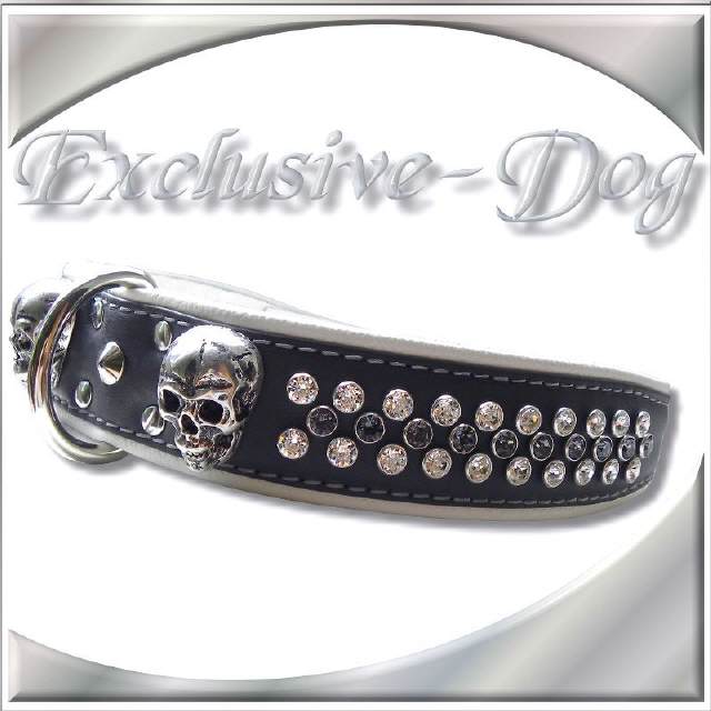 Lederhalsband Nietenhalsband grau/weiß mit SWAROVSKI ELEMENTS z.b. Rhodesian Ridgeback, Dobermann, Weimaraner " Lederhalsband BLEAK "