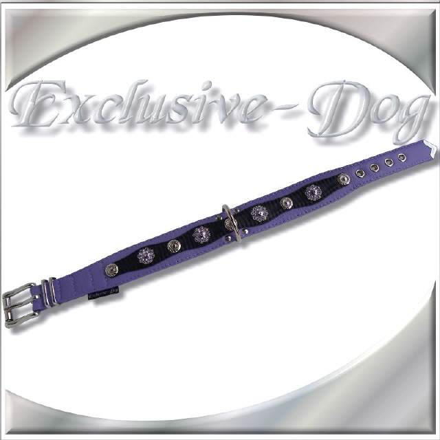 Lila Lederhalsband Leder Hundehalsband Strass für z.b. Französische Bulldogge, Dobermann, Dalmatiner, Schäferhund