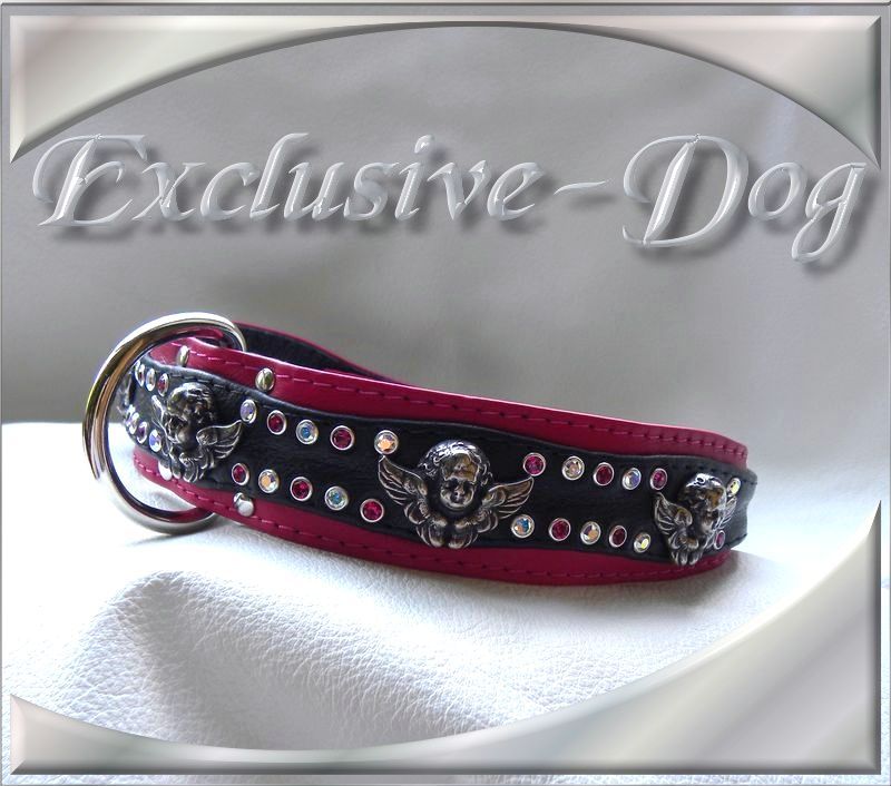 PINK Lederhalsband Strasshalsband mit SWAROVSKI ELEMENTS Leder Strass Engel z.b. Französische Bulldogge