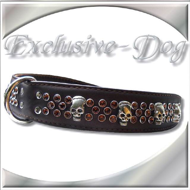 XL-L Hundehalsband Lederhalsband mit SWAROVSKI ELEMENTS Skull-Totenkopf Strasshalsband für z.b. Rottweiler Dobermann Dogge