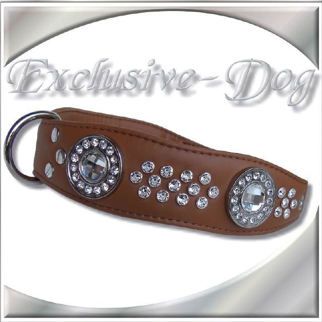 Luxus Hund Lederhalsband Strasshalsband mit SWAROVSKI ELEMENTS Hundehalsband für z.b. Dobermann -Terrier - Bulldogge Hundehalsband "EXCLUSIVE-COCNAC"