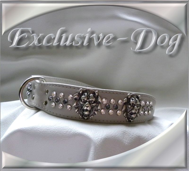 Schäferhund Rhodesian Ridgeback Lederhalsband Strass mit SWAROVSKI ELEMENTS Löwenkopf Nieten XL Halsband