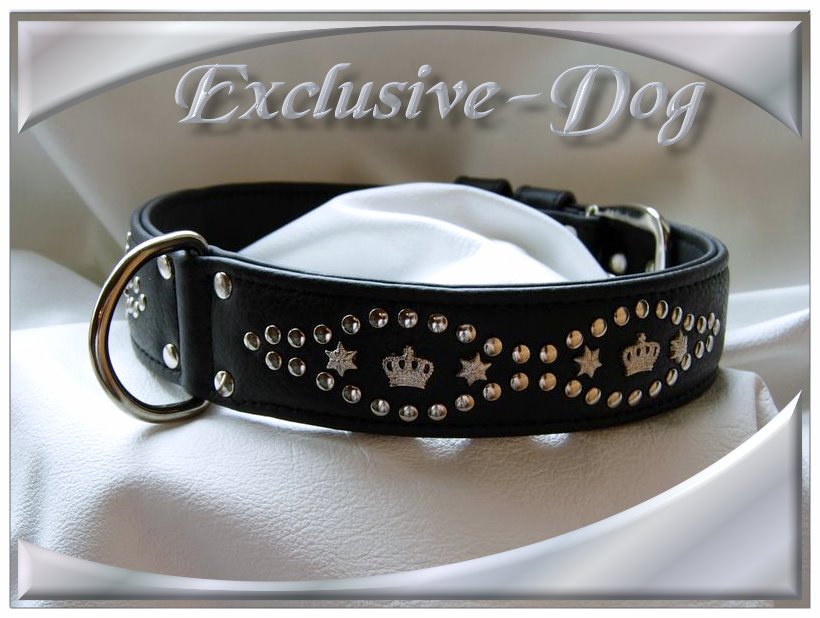Dieses Halsband wurde aus schwarzem Leder gefertigt,