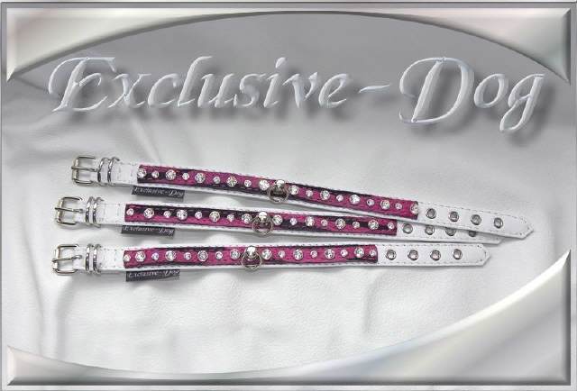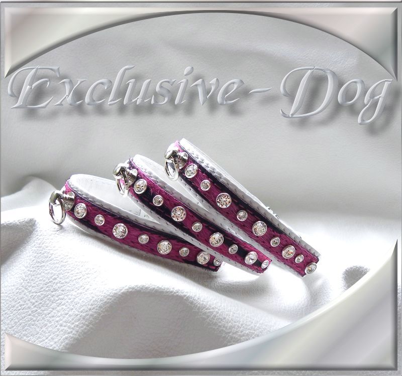 Pink - Rosa Fell Strass Leder Hundehalsband mit SWAROVSKI ELEMENTS Chihuahua Prager Rattler XS Lederhalsband