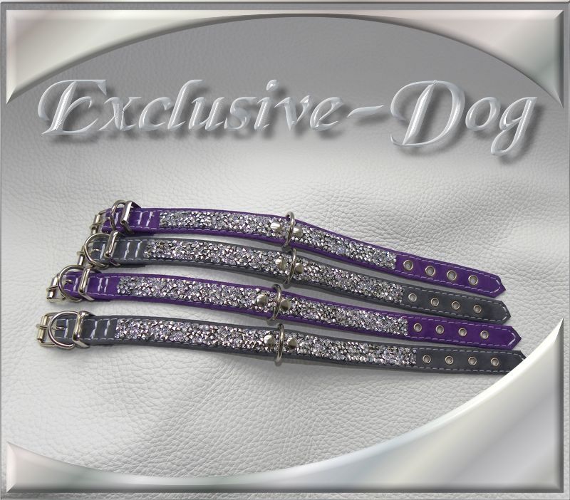 XS-S Strasshalsband lila sowie grau, mini Halsband für z.b. Chihuahua, Malteser, Yorkshire Terrier