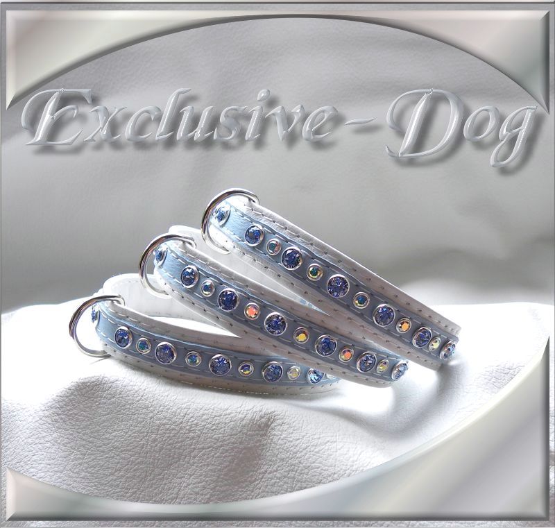 Diese Leder-Strass Halsbänder wurden aus hell-blauen Nappaleder hergestellt,