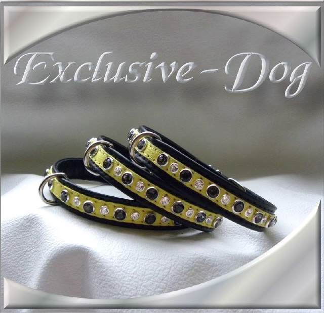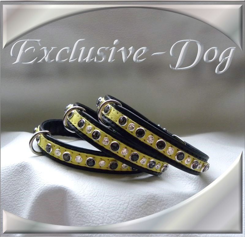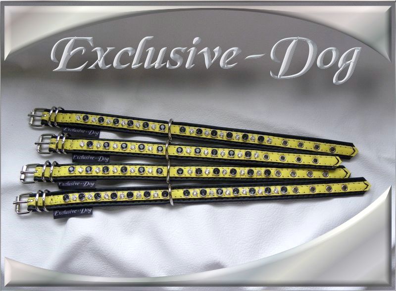 Diese kleinen Halsbänder wurden aus aus schwarz / gelben Nappaleder hergestellt.