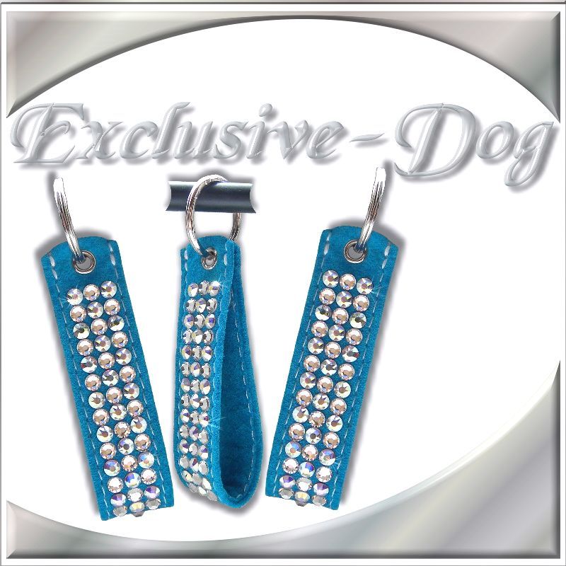 Schlüsselanhänger türkis Leder Strass Luxus Anhänger mit SWAROVSKI ELEMENTS